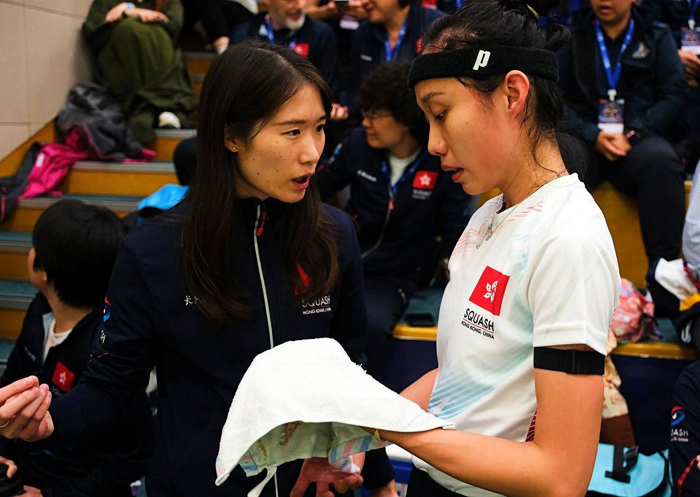 When asked about her coaching philosophy, Joey mentions the influence of her mentor and former Hong Kong squash athlete Rebecca Chiu. Joey recalls 2014 when a herniated disc shook her confidence, and it was Rebecca’s encouragement that helped her rebuild herself. The most memorable moment was a reminder from Rebecca right before the semi-finals of the 2018 Jakarta Asian Games: "Once you get on court, play boldly. Focus on the present, and don't overthink." Those words became Joey’s compass, not only during that match but in her coaching life. She understands that athletes face far more than performance anxiety, as demands from long-haul traveling, ranking pressure, logistical arrangements, and mental stress also come into play. But when the mind is calm and focused on the present, one can unleash the true potential. These words became the shot of confidence that ultimately helped her and her teammates win the historic gold medal for Hong Kong.